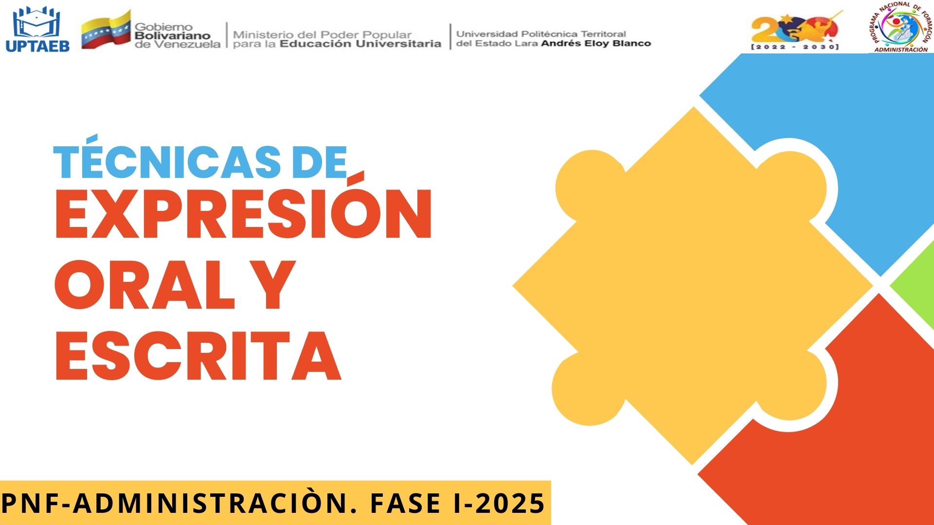 Introducción a la Universidad y a los Programas Nacionales de Formación tiene como objetivo que el estudiante conozca de entrada, cual es la nueva filosofía de los estudios Universitarios y su concepción en Programas Nacionales de Formación, pertenece al Trayecto Inicial y se ve en un solo periodo